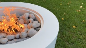 Цилиндрический очаг из бетона сочетает в себе минималистичный дизайн и функциональность. Его гладкая поверхность и лаконичная форма подчеркивают современный стиль, а газовая горелка из нержавейки обеспечивает ровное и безопасное пламя. Больше не нужно беспокоиться о дыме или искрах — газовый очаг прост в использовании и экологичен.